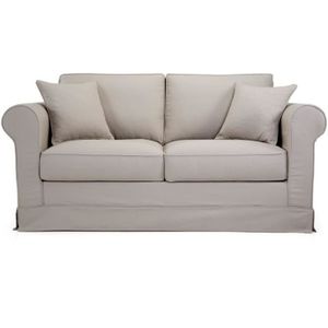 Canapé fixe 2 places recouvert de tissus blanc cassé.