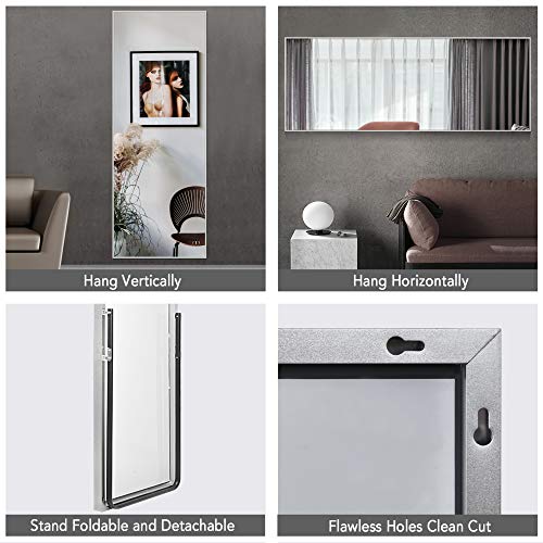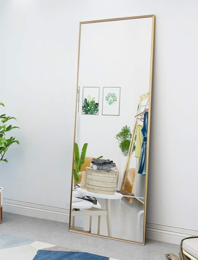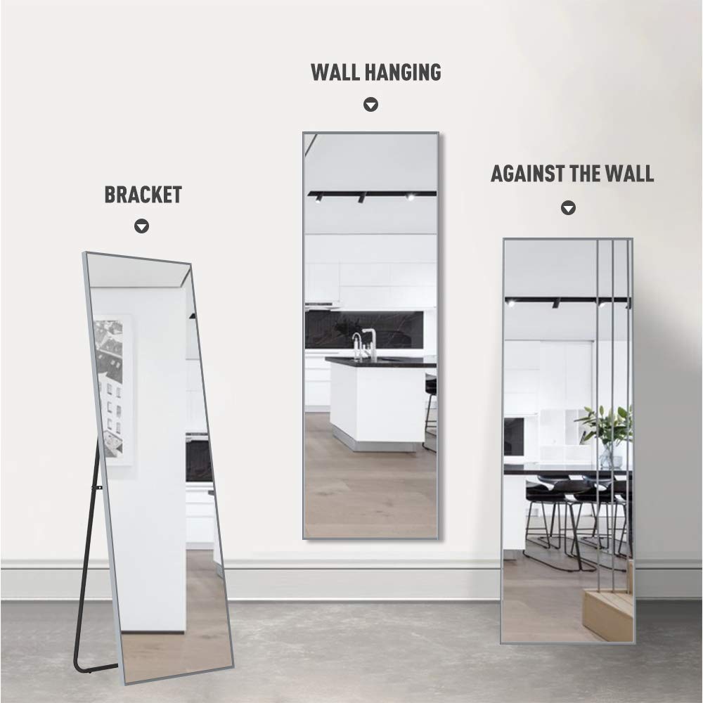 Can easily hang, too, either vertically and horizontally. I bought the matt gold finishing very nice. This rectangular mirror features a brushed silver finish with a decorative gray ribbing. Floor mirror full size is 65x 22, providing all viewing angles in one. Its aluminum alloy frame is elegant and has a gold color.
