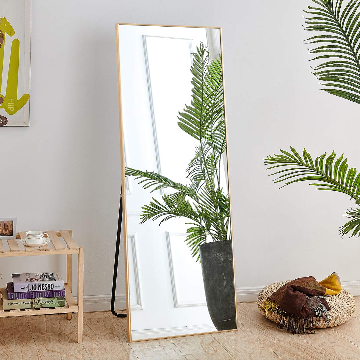 Its aluminum alloy frame is elegant and has a gold color. Framed in a narrow grey washed frame quality material: Perfect for a chic dressing room, bathroom or hallway, this. Its frame shows decorated bling with black thin outer frame to shape it. Onxo full length large floor mirror standing. Raamzo wooden cheval full length floor mirror. This self standing full length floor mirror offers a modern update to the classic leaner mirror. It is very large, providing all viewing angles. The mirror can simply lean against the wall. Frameless mirrors are perfect for modern decors. This full length floor mirror is secured with the extra metal placed on the back. Different colors and different sizes suit to different places and situations. Nicetree led full length mirror & jewelry cabinet.