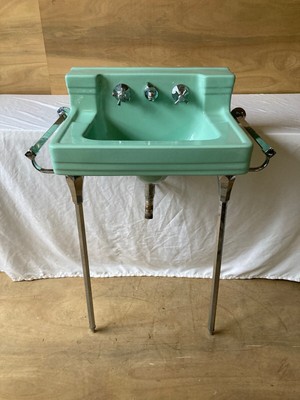 Give us a call or email and we can check our inventory, as not all of our sinks are on the website due to the nature of antique items. We've got cast iron, vitreous china, and earthenware sinks in our warehouse and showroom. It is the perfect piece for the traditional bathroom setting. Get 5% in rewards with club o! This elegant sink would coordinate well in a victorian or any traditional environment. This bathroom sink console is a perfect center piece for the modern style bathroom. As always, our porcelain sinks have been covered under a limited lifetime warranty for as long as you own the sink. Antique sinks come in all shapes, colors, and sizes. Similar to pedestal sink, console sinks are held up by both the wall behind it and the stand underneath it. Available in popular colors like bronze, black, nickel, bronze and brass. Vintage crane drexel wall mount bathroom sink legs 21 wide white porcelain as is. Kingston brass imperial stainless steel console sink legs in polished chrome. Console sinks console bathroom sinks include two pieces: