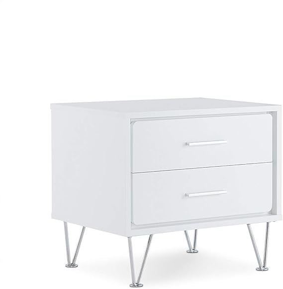 Minimal nightstand takes a modern turn in glossy white lacquer. Not content to get by on looks alone, this nightstand offers two sizeable drawers and an open shelf to meet your bedroom storage and organizational needs. This stylish tall night stand features an open shelf that is perfect for bedside reading material. Description white nightstand is an easy addition to your bedside decor. See more ideas about 2 drawer nightstand, drawer nightstand, nightstand.